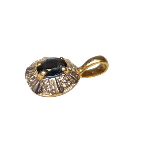 14k Keltakultainen riipus safiirilla ja 6x timantilla